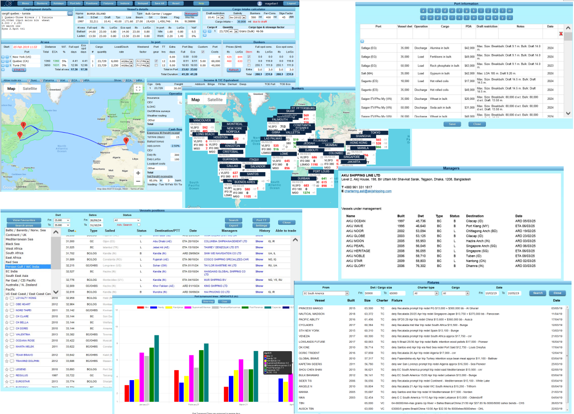 - Ship operators can easily calculate operation result incl. off-hire / pro rata periods, bunkers consumptions & ROB, deductions, operation expenses, etc